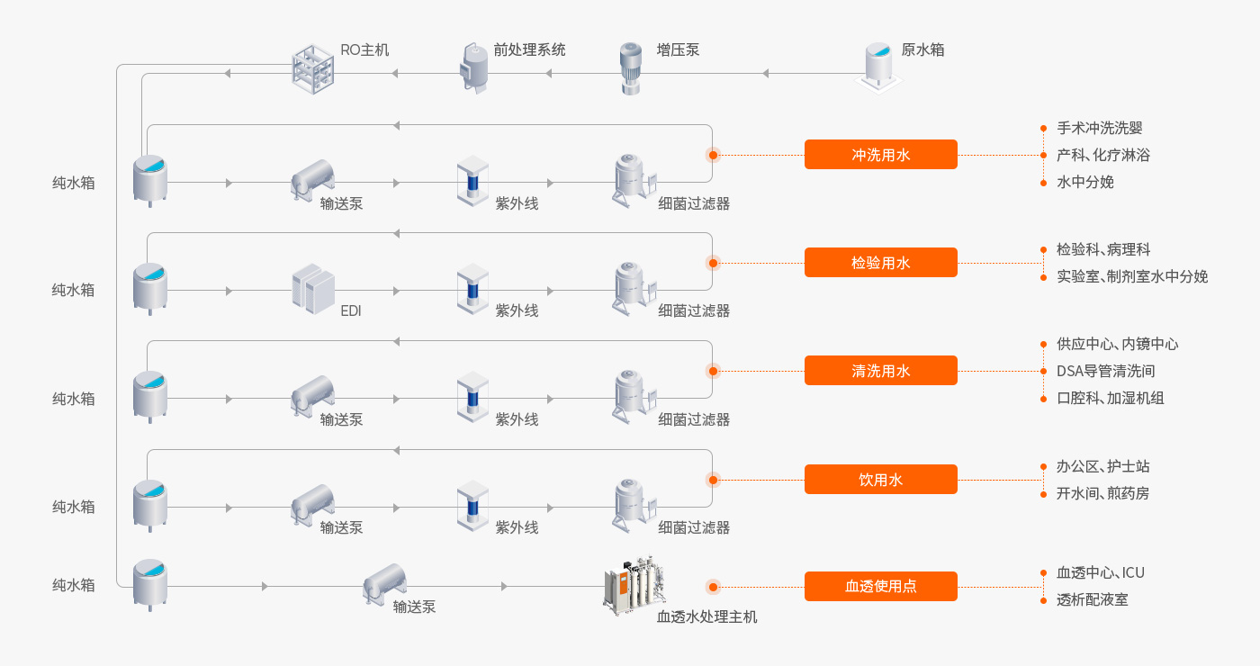 即開(kāi)即用體驗(yàn):創(chuàng)新循環(huán)管路設(shè)計(jì)確保各用水點(diǎn)24小時(shí)供應(yīng)新鮮達(dá)標(biāo)用水,隨開(kāi)隨用,完全滿足臨床即時(shí)需求。
